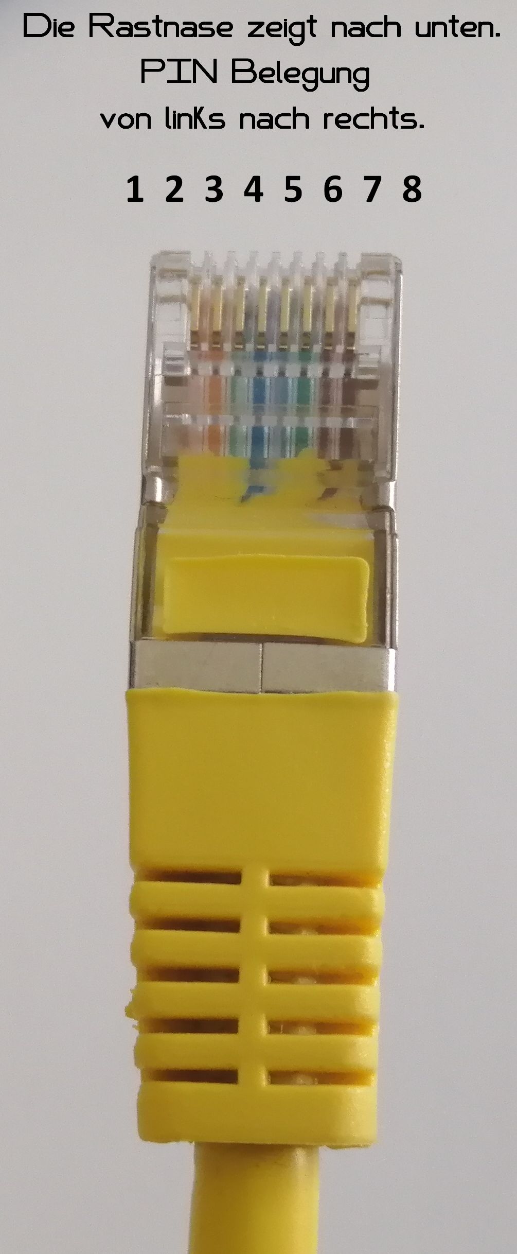 Für die Mikrofonbuchse wird ein RJ45 Stecker benötigt oder man nimmt ein RJ45 Kabel mit Stecker und konfektioniert es sich längenmäßig. Farbbelegungen im RJ45 Kabel können abweichen. Deswegen vorsichtshalber die Kontakte und Kabel durchklingeln.